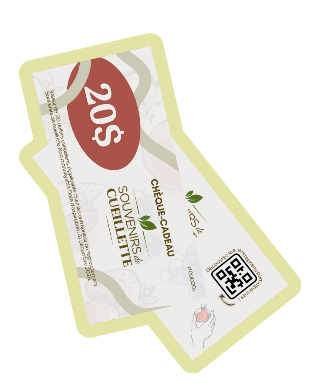 valides uniquement chez les établissements participants de Souvenirs de cueillette;